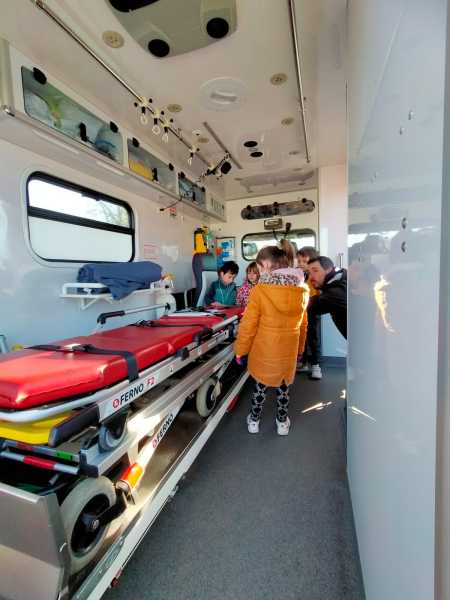 Les pompiers nous ont présenté différents véhicules, leurs utilités et les différents outils. On a pu monter à l’intérieur d’un camion ambulance, d’un camion-citerne, d’un camion VSR. Quelle chance !!! On avait l’impression d’être un pompier en enfilant leurs vestes et casques. On a soulevé les tuyaux. C’était lourd ! On a même essayé la lance à incendie.