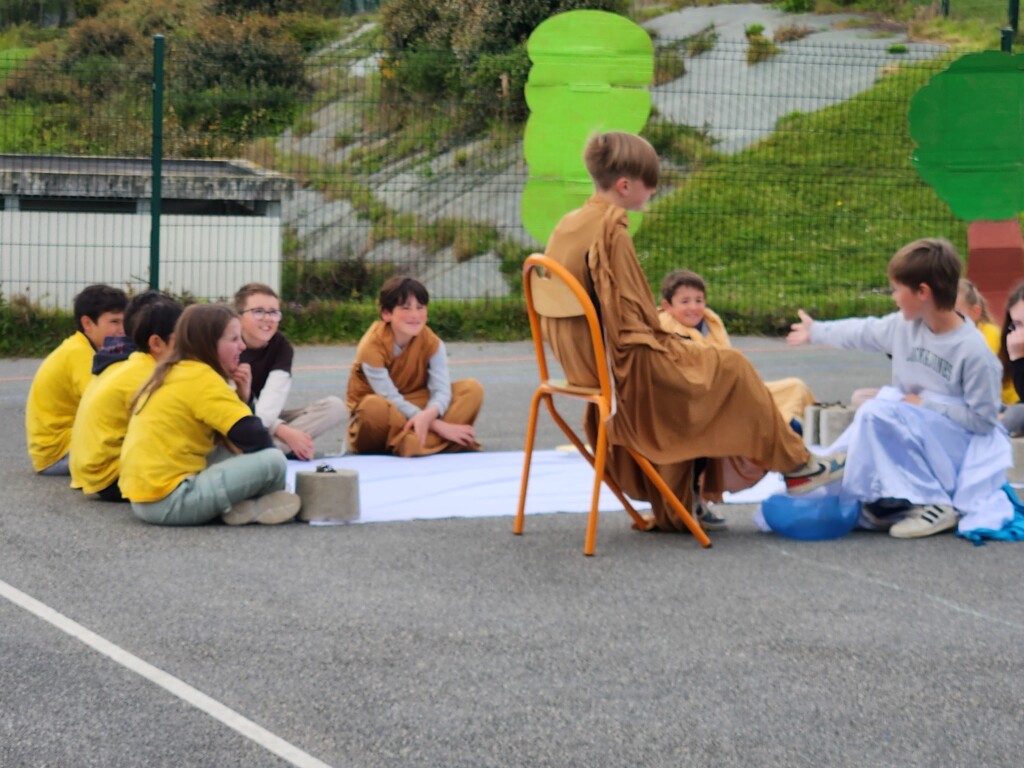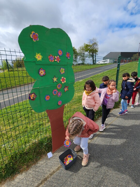 Jeudi matin, tous les élèves ont vécu un temps fort sur la semaine Sainte. Ce temps de partage a commencé par la lecture de la Légende du colibri, histoire lue dans chacune des classes par des CM1-CM2. Cela a amené des échanges entre élèves et a permis de comprendre que même si pris isolément nos actes semblent dérisoires, c’est grâce à la somme de nos actions que les choses changent. Chacun a ensuite oeuvré à fabriquer sa fleur en papier. Toutes les fleurs ont été ensuite rassemblées et accrochées aux arbres de la cour pour les embellir. Ce temps fort s’est terminé par la mise en scène de la Semaine Sainte par des élèves de CM1-CM2.