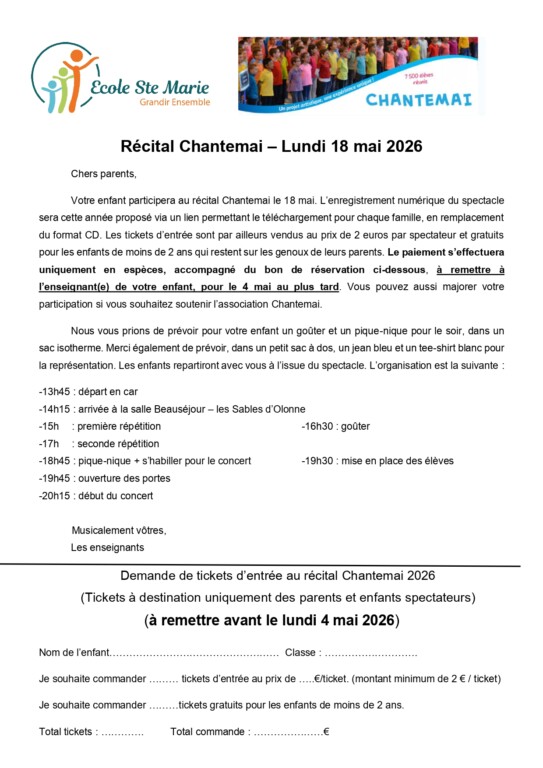 Merci de bien penser à rapporter le coupon-réponse à l’école. Date limite : lundi 4 mai dernier délai.